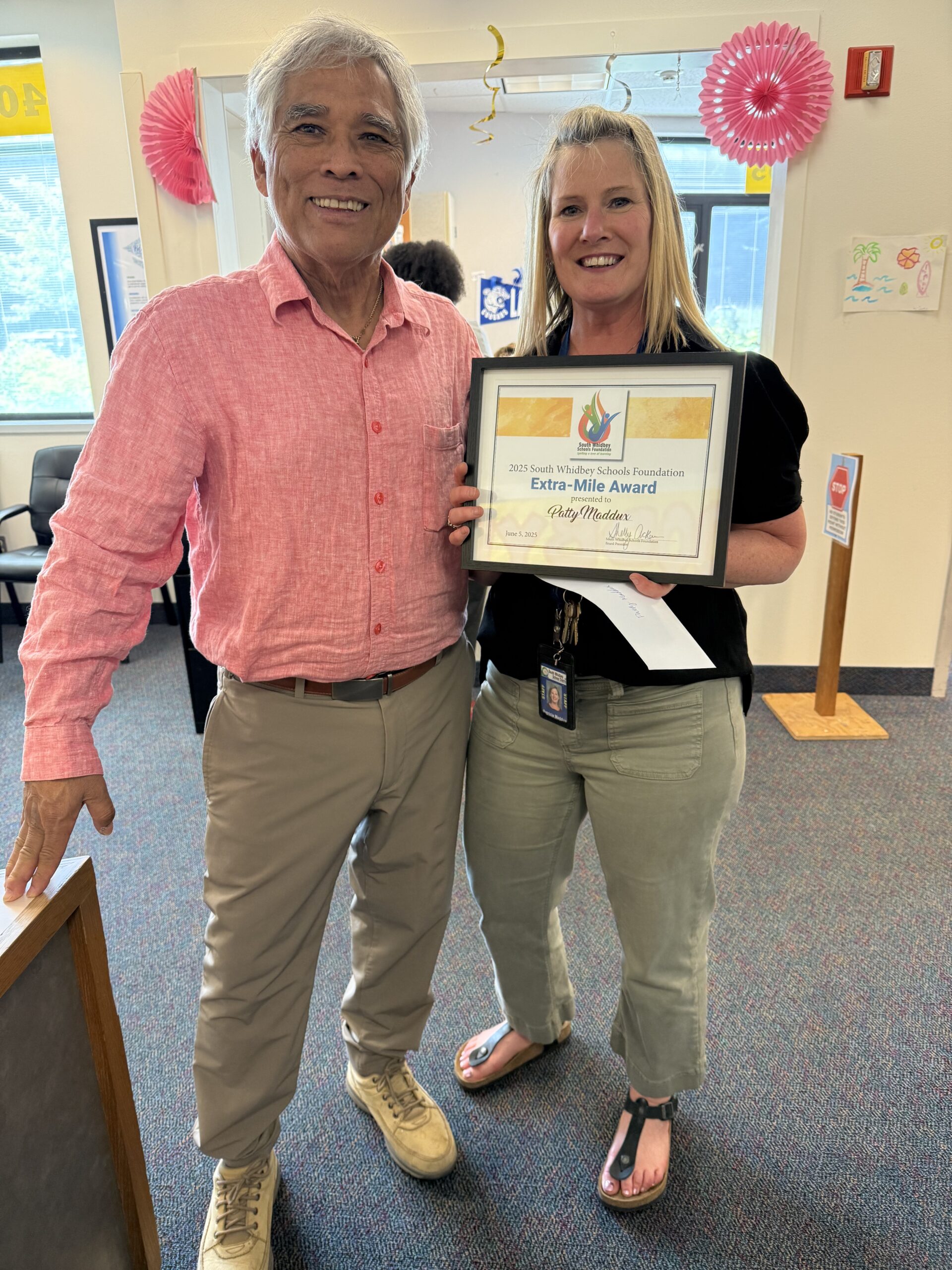 Speech language pathologist Becky Breeze, a member of the special education departments at both the elementary and middle schools received the South Whidbey Schools Foundation Extra Mile Award for 2015/16.